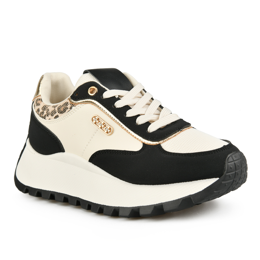 γυναικεία αθλητικά παπούτσια οικολογικό δέρμα μαύρο/μπεζ 0160734