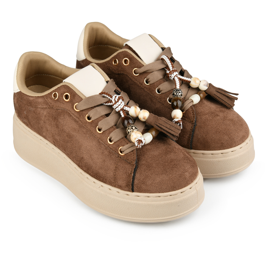 γυναικεία αθλητικά παπούτσια οικολογικό δέρμα/ύφασμα καφέ 0160541