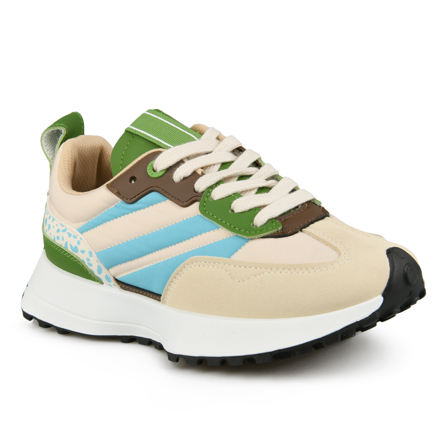γυναικεία αθλητικά παπούτσια οικολογικό δέρμα/ύφασμα μπεζ/πράσινα 0159922