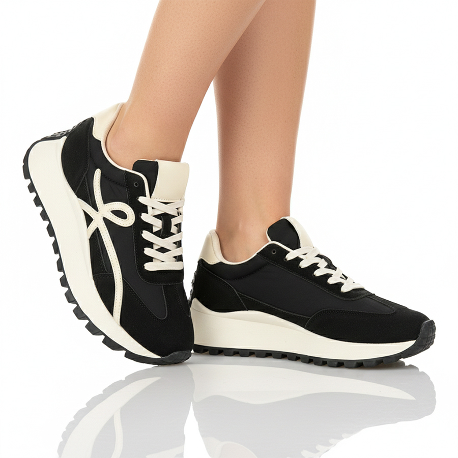 γυναικεία αθλητικά παπούτσια ύφασμα/οικολογικό δέρμα μαύρο 0159253