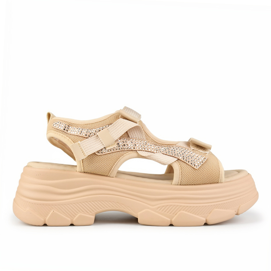 γυναικεία σανδάλια ύφασμα μπεζ 0161058