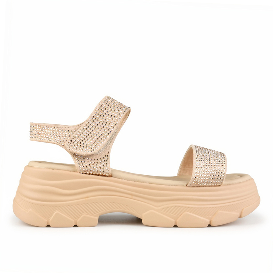 γυναικεία σανδάλια ύφασμα μπεζ 0161060