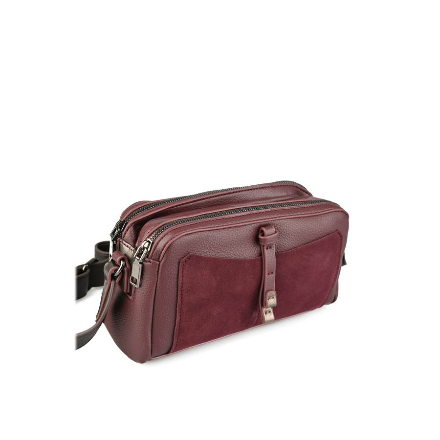 γυναικεία τσάντα φυσικό δέρμα/ύφασμα μπορντό 0158206