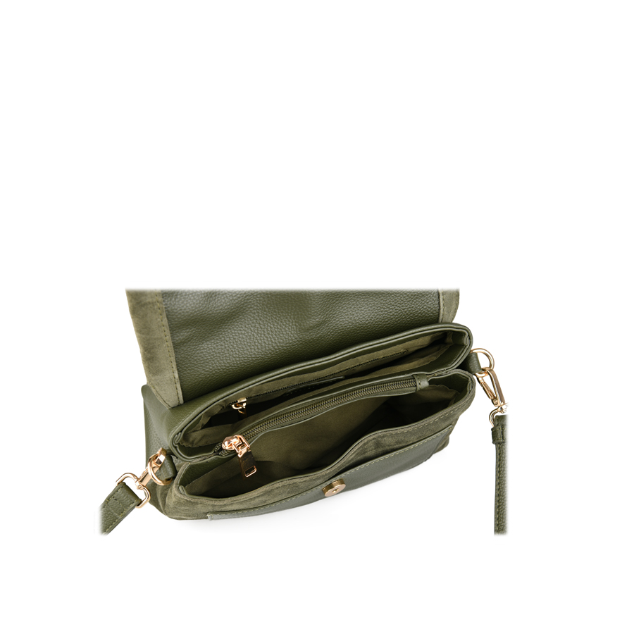 γυναικεία τσάντα φυσικό δέρμα/ύφασμα πράσινη 0158203