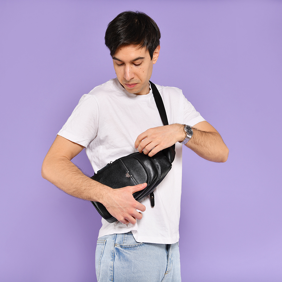 ανδρική τσάντα φυσικό δέρμα μαύρη 0161302