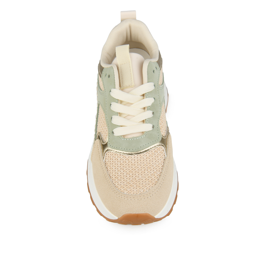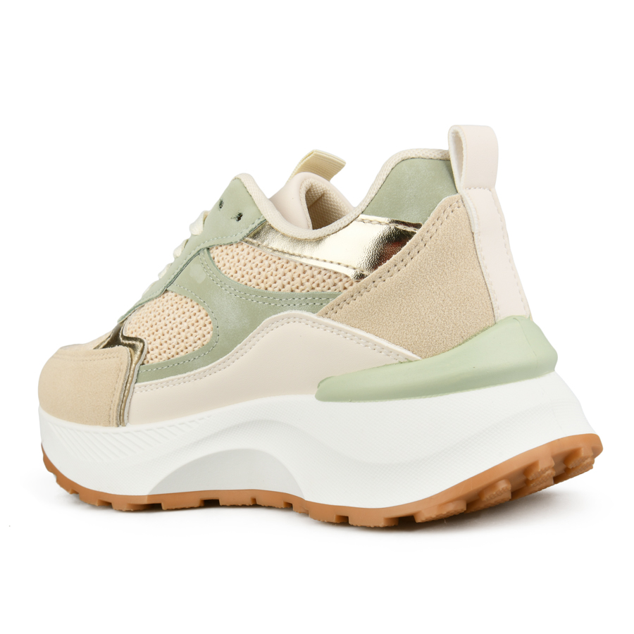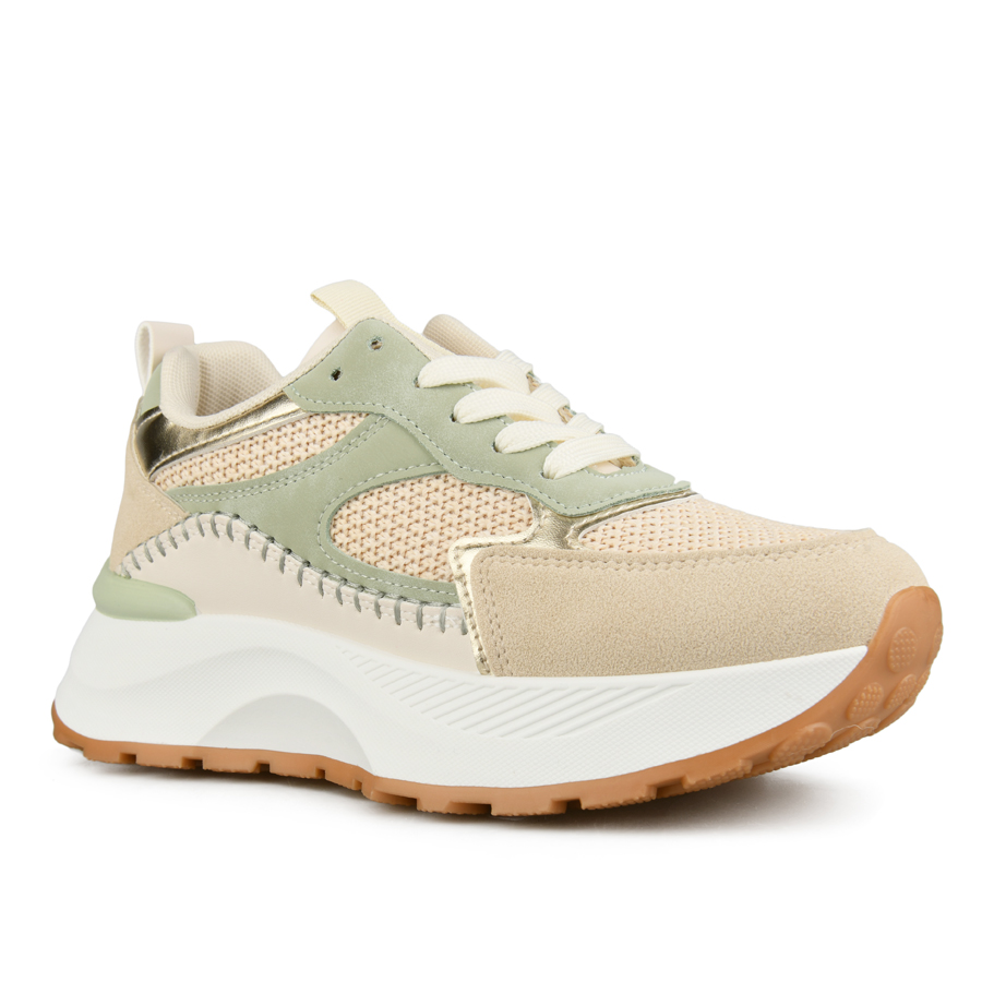 γυναικεία αθλητικά παπούτσια ύφασμα/οικολογικό δέρμα μπεζ/πράσινα